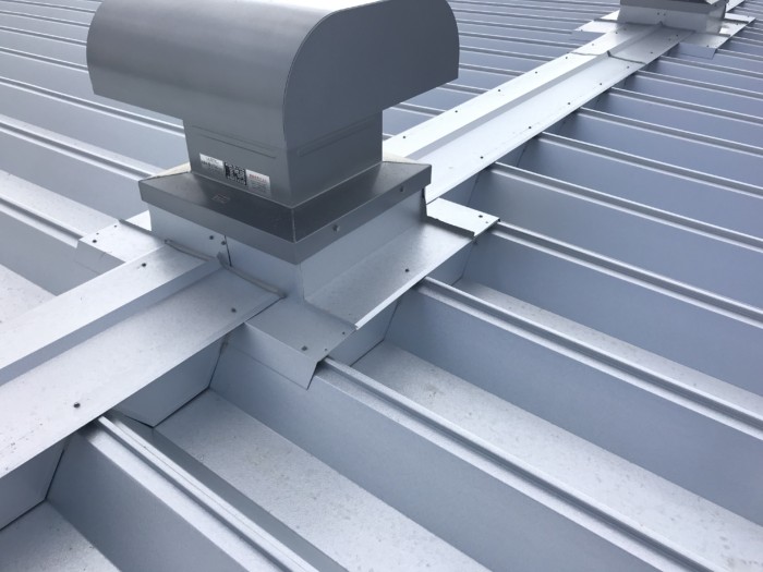 パラペット水切、ルーフファン水切、棟板金も取り付け完了です